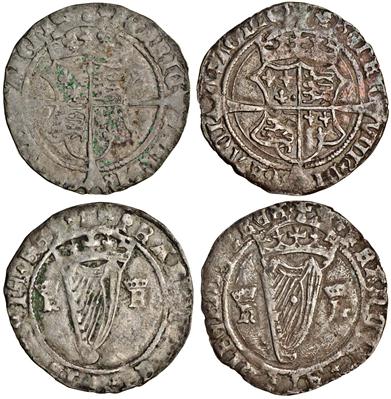 Henry VIII (1509-47), second harp issue, 1540-42, Groat, 2.46g crowned shield over long cross, rev. hibernie rex, crowned harp dividing crowned initials (D.F.209; S.6480), good fine, 2.46g, similar, fine (2)