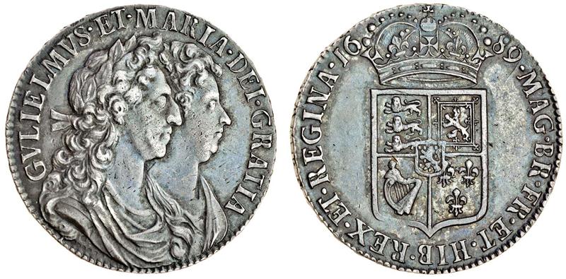 (x) William and Mary, Halfcrown, 1689 primo, conjoined laureate draped busts right, rev. crowned first shield, frosted caul, pearls (ESC 505; S.3434), dark tone, nearly extremely fine