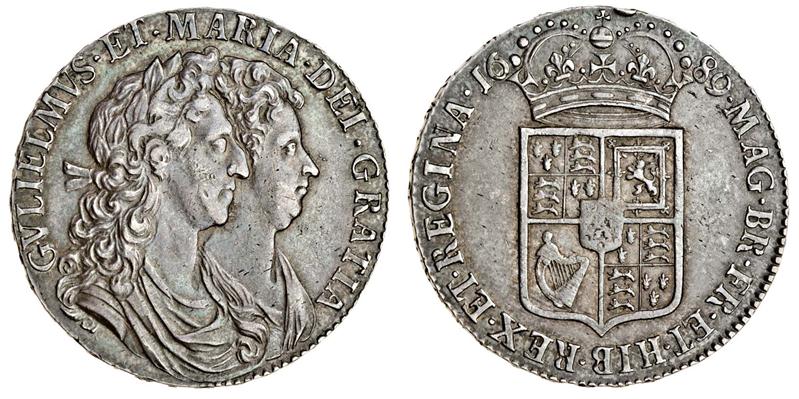 (x) William and Mary, Halfcrown, 1689 primo, conjoined laureate draped busts right, rev. crowned second shield, no frosting, no pearls (ESC 512; S.3435), good very fine