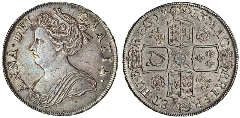 Anne, post-Union, Crown, 1713 dvodecimo, third draped bust left, rev. four crowned shields cruciform, roses and plumes (ESC 109; S.3603), spot by forehead, a few light marks, even tone, good very fine