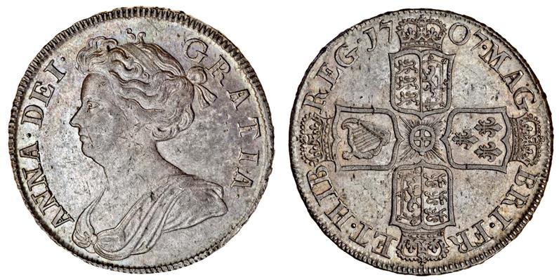 (x) Anne, post-Union, Halfcrown, 1707 septimo, draped bust left, rev. four crowned shields cruciform (ESC 574; S.3604), lightly toned, lustrous, extremely fine