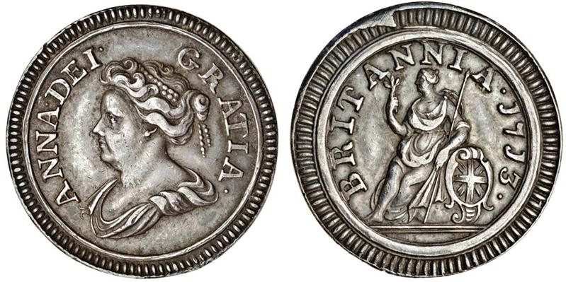 (x) Anne, pattern Farthing in silver, 1713, draped bust left, rev. Britannia seated left (Peck 746), very fine