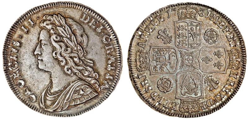 (x) George II, Halfcrown, 1731 qvinto, young laureate, cuirassed and draped bust left, rev. four crowned shields cruciform, roses and plumes (ESC 595; S.3692), light adjustment marks, toned, almost extremely fine