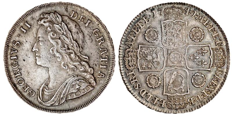 (x) George II, Halfcrown, 1741 qvarto, young laureate, cuirassed and draped bust left, rev. four crowned shields cruciform, roses (ESC 601; S.3693), light adjustment marks, even grey tone, extremely fine