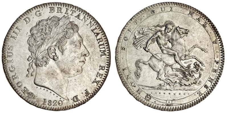 George III, Crown, 1820 lx, laureate head right, rev. St George and dragon (ESC 219; S.3787), sometime cleaned, good very fine