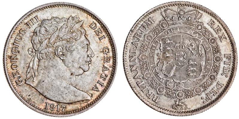 (x) George III, Halfcrown, 1817, laureate 'bull' head right, rev. crowned shield within Garter Ribbon (ESC 616; S.3788), toned, good extremely fine