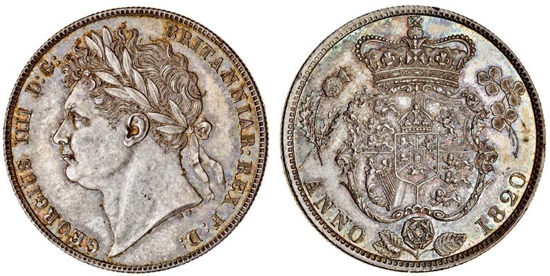 (x) George IV, Halfcrown, 1820, laureate head left, rev. crowned garnished shield, emblems around (ESC 628; S.3807), almost uncirculated