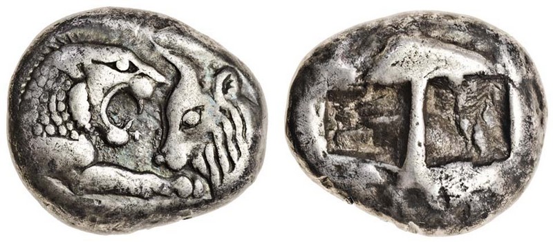 Kingdom of Lydia, Kroisos (560-546 BC), AR Stater or Double Siglos, 10.49g, forepart of lion right, confronting forepart of bull left, rev. two square punches side-by-side (cf Boston 2070; Traité 407), good metal, about very fine