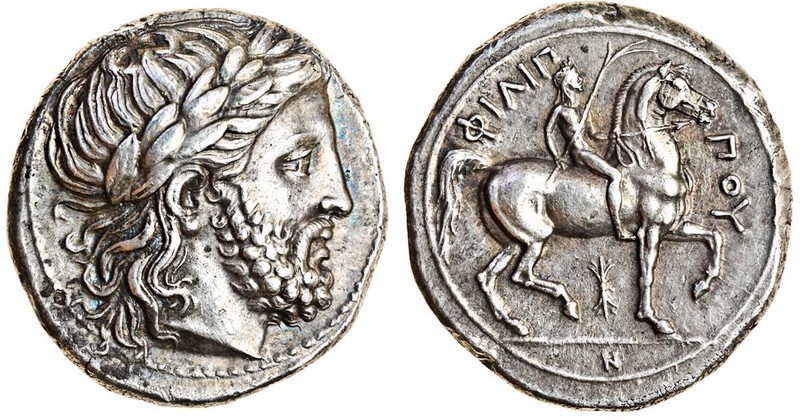 Kingdom of Macedon, Philip II (359-336 BC), AR Tetradrachm, 14.46g, Pella, c.342-336 BC, laureate head of Zeus right, rev. iioy, nude jockey on pacing horse right, holding palm-branch, thunderbolt below, n in ex. (Le Rider 201; Traité pl. CCCVII, 2), of finest style, extremely fine