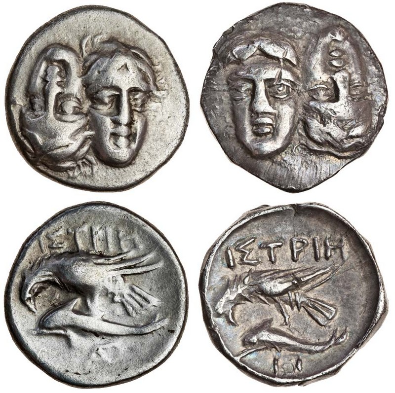 Moesia, Istros (4th cent. BC), AR Drachms (2), 5.17g, two male heads facing, the left inverted, rev. sea-eagle on dolphin left, monogram below (cf SNG BM 240ff), 4.79g, similar, good fine to about very fine (2)