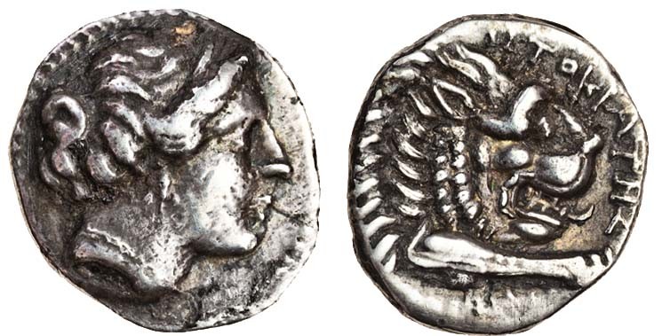 Caria, Knidos (c.330-250 BC), AR Drachm, 2.91g, magistrate Autokrates, head of Aphrodite right, hair bound with cloth, rev. forepart of lion right, magistrate’s name before (SNG Finland 174), very fine
