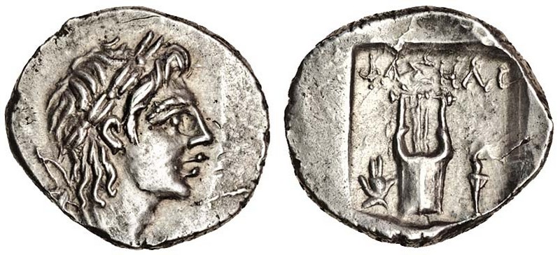 Lycia, Phaselis (c.88-77 BC), AR Hemidrachm, 2.60g, laureate head of Apollo right, rev. lyre between headdress of Isis and torch (SNG Cop 125; NNM 162), extremely fine