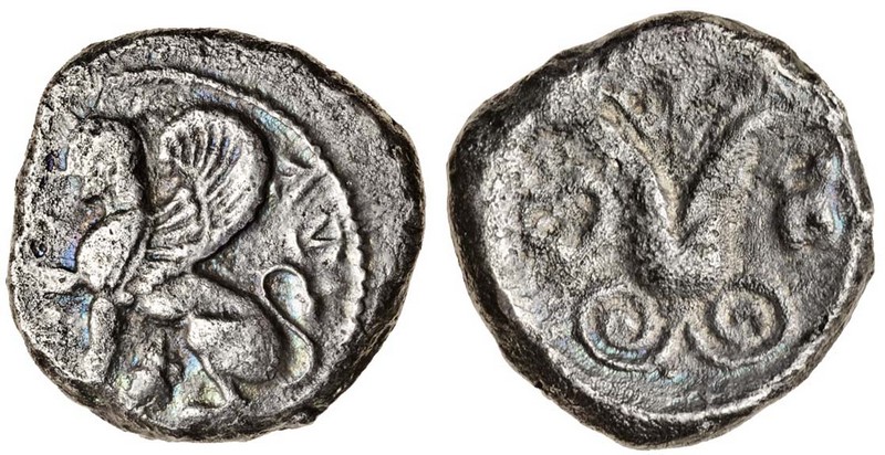 Cyprus, Idalion, uncertain king (c. 470-460 BC), AR Stater, 10.67g, sphinx seated left, right forepaw raised, Cypriot letters behind, rev. lotus-flower, leaf on left, astragalos on right (BMC 10), very rare, toned over light surface erosion, about very fine