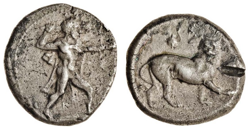 Cyprus, Kition, Baalmalek I (c.479-449 BC), AR Stater, 9.97g, Herakles advancing right, lion's skin over shoulders, holding club and bow, rev. lion walking right, head facing, uncertain script and symbol above, test-cut at edge of reverse, toned over light porosity, very rare