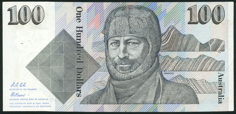 (x) Reserve Bank of Australia, $100 (2), ND (1992), prefix ZLD, grey and multicoloured, Tebbutt at left centre, Fraser-Cole signatures