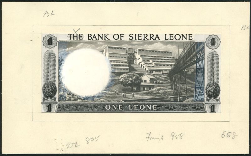 (†) Bank of Sierra Leone, a reverse composite black and white photographic style proof on card for the reverse of an unissued 1 Leone, ND (ca 1964), mine, elevator and waggons