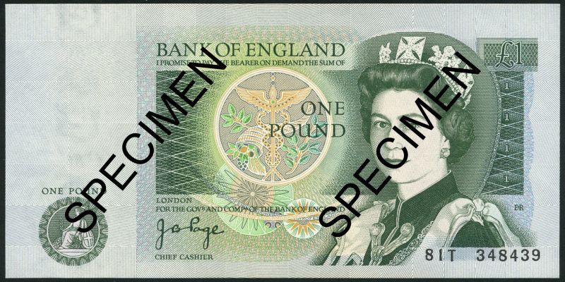 Bank of England, (J.B.Page), £1 (2), ND (1978), serial numbers 81T 348439/440, green and orange, Elizabeth II at right, caduceus top centre, Britannia low left, reverse Sir Isaac Newton right centre