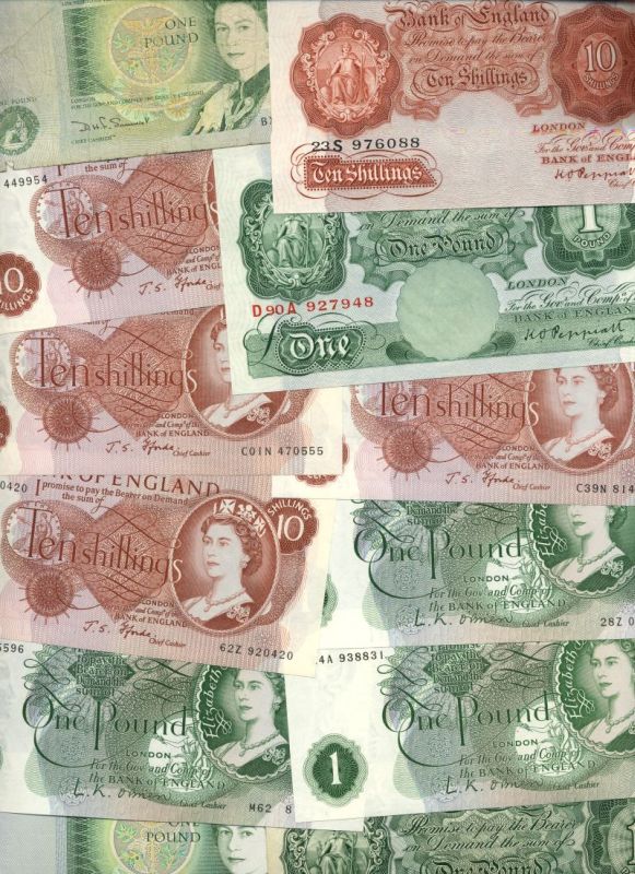 Bank of England, a selection including Peppiatt 10 shillings (B 236), blue £1 (B 249), green £1 (B 239), O'Brien £1 (3), prefix 24A, M62,28Z, 10 shillings, 62Z, FForde 10 shillinks 'C01N', £5 (4), £10 and a Bailey £20 plus minors
