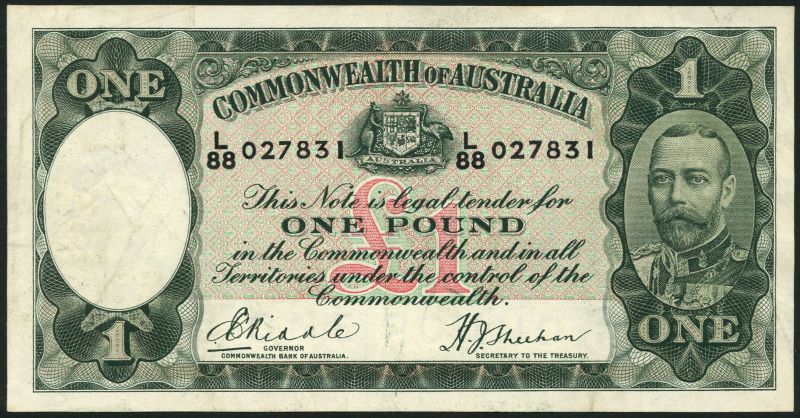 Commonwealth of Australia, 10 shillings, orange and green, £1, green , both ND (1936), both George V at right and Riddle and Sheehan signatures