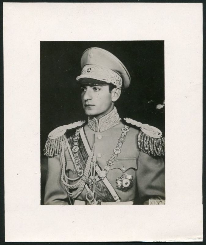 (†) Iran, an original photograph of Shah Pahlavi, wearing military uniform including cap and the Order of Pahlavi without chain. See lots 647 and 648 in Spink sale 13004 (April 2013) for examples of note trials using this photograph,