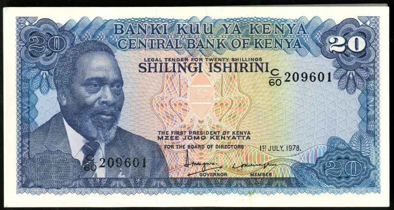 Central Bank of Kenya, 5 shillings (200), 10 shillings (100) and 20 shillings (100), all 1978, all with Kenyatta at left, value at top corners and low right