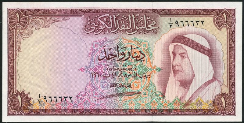 (x) Kuwait Currency Board, 1 dinar, 1961, purple and multicoloured, Shaikh Abdullah Al-Salem Al-Sabah at right