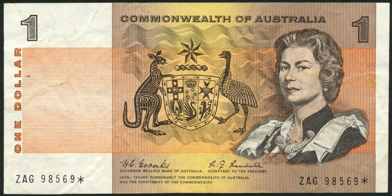 (x) Commonwealth of Australia, $1 star suffix replacement note, ND (1968), brown and multicoloured, Elizabeth II at right, arms at centre, Coombs-Randall signatures
