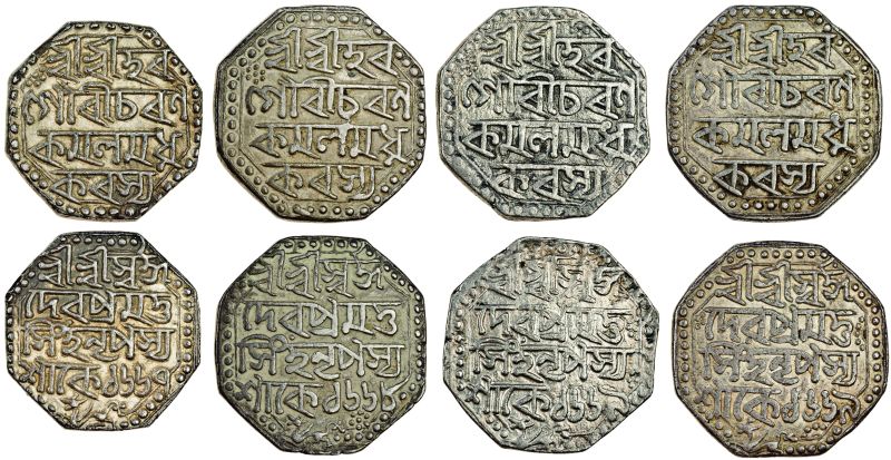 Assam, Pramatta Simha, octagonal Rupees (4), Assamese script, Sk. 1667, 1668, 1669 (2), legends as previous lot (RB. N8, N9, N10.1, N10.3; KM. 122), very fine (4)