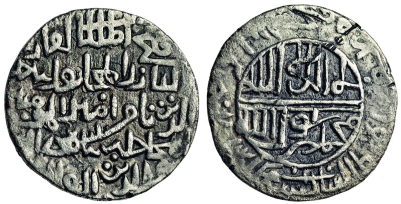 This rare issue, which is known in two varieties, commemorates a successful military campaign in the Kamta area of present-day Assam. The obverse legend translates as: "The victory of the just and generous king, the warrior, fortunate in the faith, the helper of the Commander of the Faithful, who is called Shams al-Dunya etc.