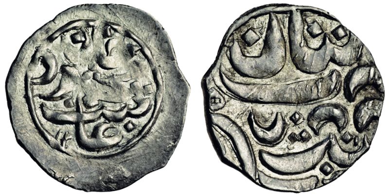 Ladakh, AR Ja'u, 2.32g, aqibat mahmud khan 12 within a plain circle, rev. as previous lots, type not in KM, good very fine, obverse somewhat weakly struck in part, very rare