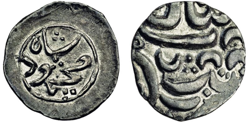 The Mahmud Shah quoted on this and subsequent coins is believed to refer to Mahmud Shah Durrani, the ruler of Kashmir. Ex-Pitchfork collection.