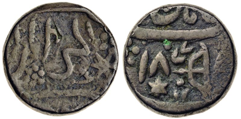 After the Gorkhas were expelled from Sirmur in 1815, the historical Rajput rulers were restored to their domains and governed what was tantamount to a British feudatory state. This is the last coin issue from the Nahan mint.