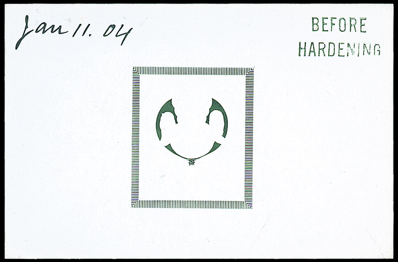 Rupee flags and borders in black on glazed card (92x60mm.), marked "before hardening" and dated "Jan 11.04"; fine. Photo