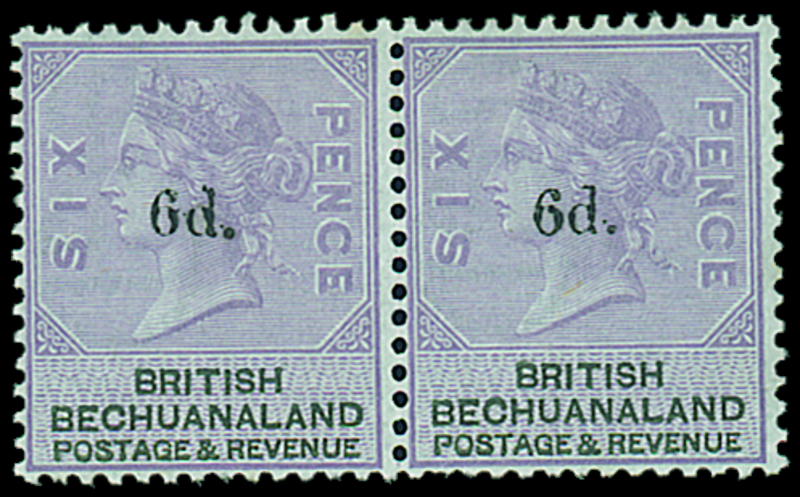 6d. on 6d. lilac and black horizontal pair, exceptionally fresh, unmounted mint, and a mint single, small gum crease. S.G. 26, £420+. Photo for pair