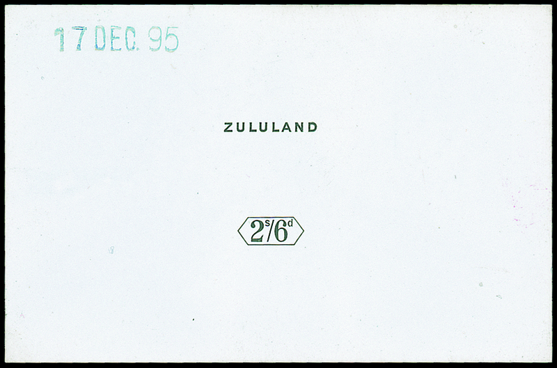 2/6d. die proof of the country name and value tablet, in black on glazed card (92x60mm.) dated "17 dec. 95"; fine. Photo
