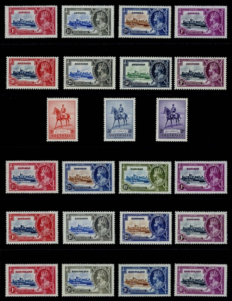 1935 Silver Jubilee complete less Egypt, varieties noted included Fiji 2d. and 1/- with diagonal line by turret, and Gold Coast 1d. and 6d. with extra flagstaff, fine mint and apparently all unmounted