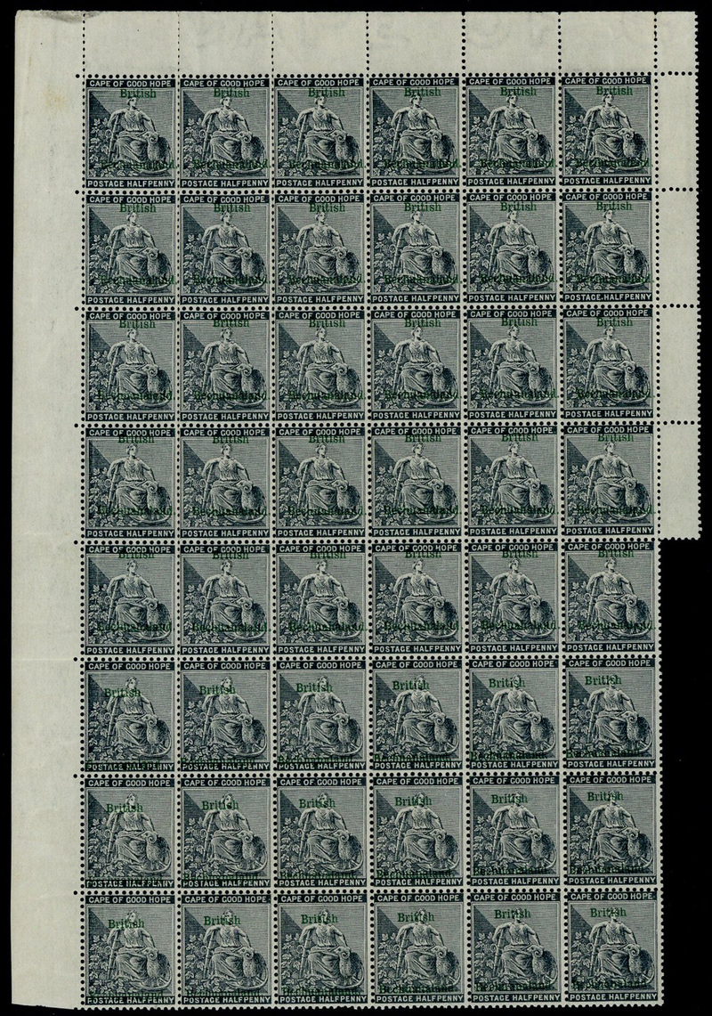 ½d. grey-black block of forty-eight, comprising the top eight rows of the lower left pane with margins at left, top and partially at right, the upper five rows showing the complete setting of thirty, partially repeated on the three rows below; the left vertical row with light gum crease, otherwise fresh unmounted mint. A scarce multiple. S.G. 30