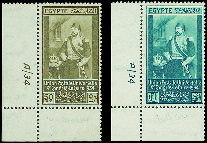 1m. to £E1, set of fourteen each with Control "A/34", original gum, 3m. rounded corner, 4m. creased, some very light pencil notations in the margins, fine. S.G. 219-232. Photo