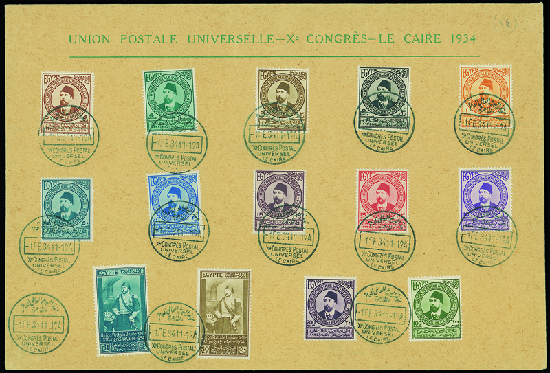 Set, tied to unaddressed special printed cover by "Xe Congress Postal/Universal/(Caire)" first day cancellations, fine. S.G. 219-232. Photo