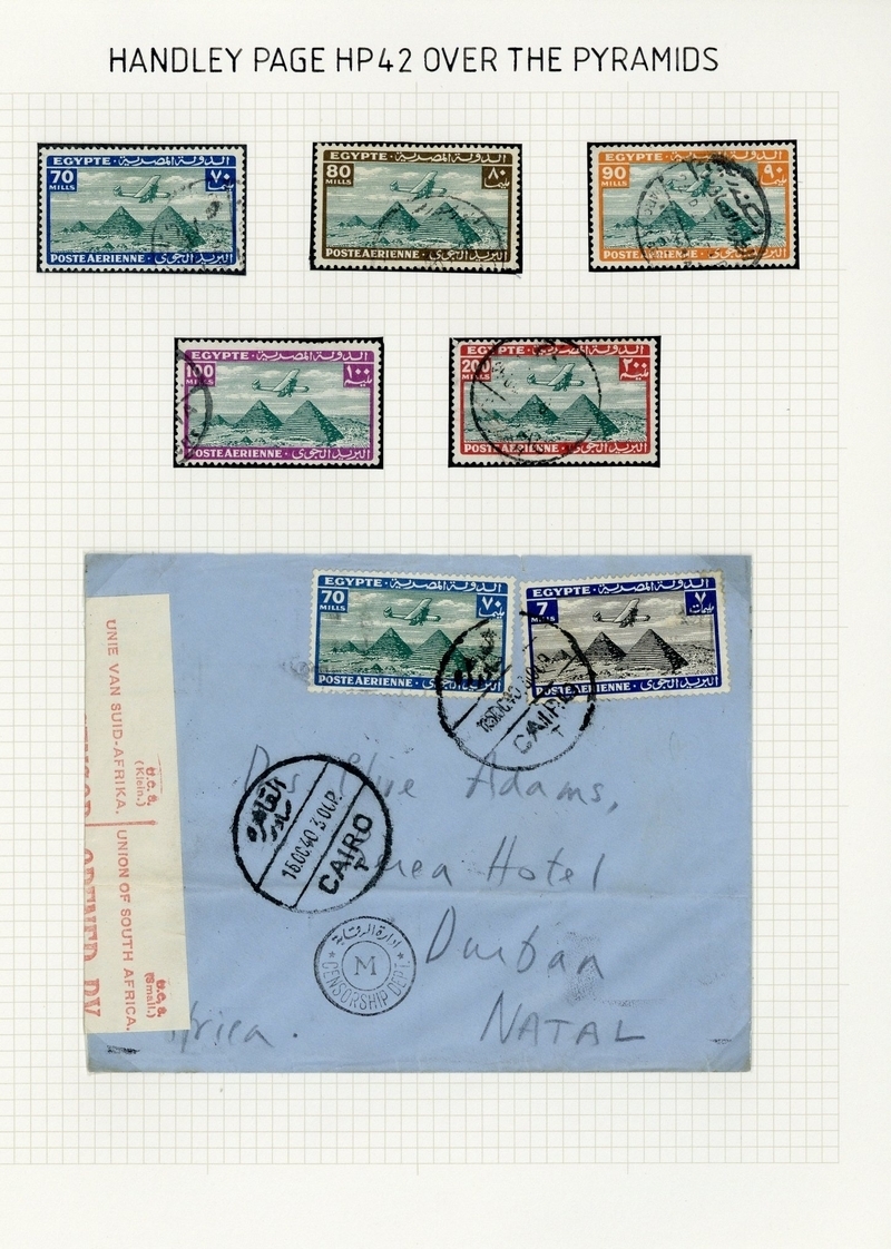 Air Mail selection on pages, sixty-eight stamps and twenty covers, including 1926-29 27m. (both), 1933-38 set, 7m. and 70m. on Censored cover to Natal, 90m. used with Postage 4m. on cover to Holland, 1947 set, etc., mostly fine