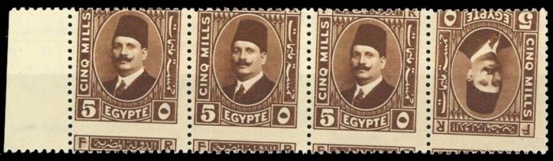 — 5m. deep red-brown, horizontal strip of four with one tête-bêche, unmounted mint, fine. S.G. 156a