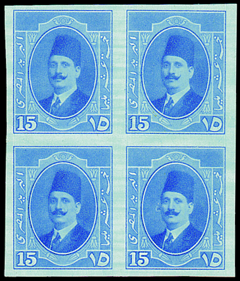 1923-24 Harrison 15m. blue, imperforate Proof block of four on gummed and watermarked paper, unmounted mint, slight wrinkles, fine. Balian 242c. Photo