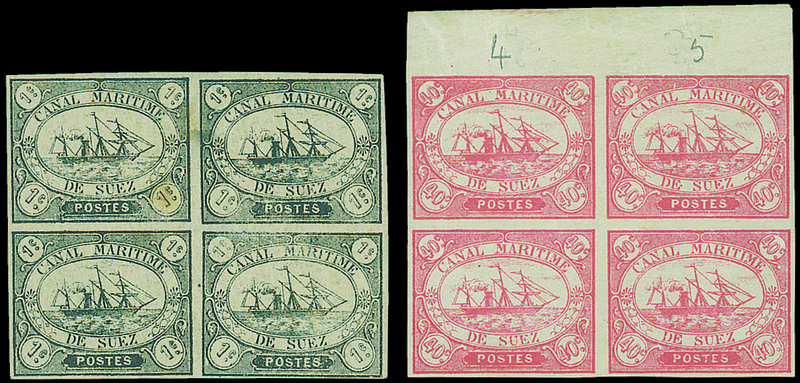1c., 5., 20c. and 40c., the set in blocks of four, large part original gum, good margins, the 1c. a little stained but a fine and rare set. S.G. 1-4, £2,160+. Photo