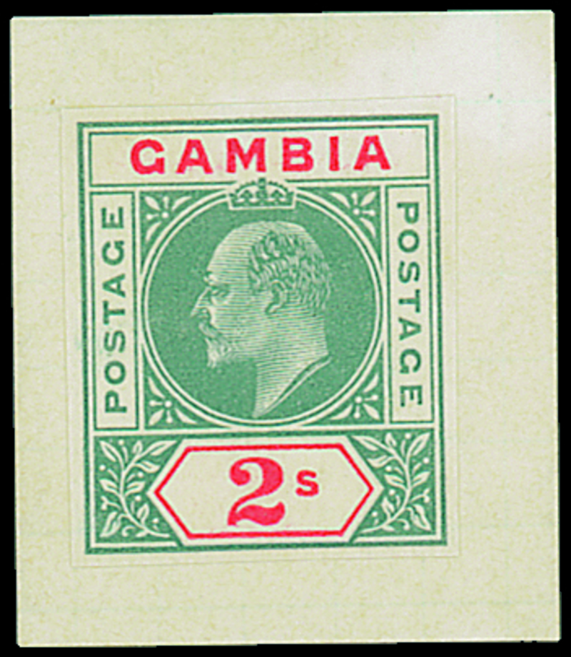 2/- in grey and scarlet, partially affixed to small piece; fine. Photo