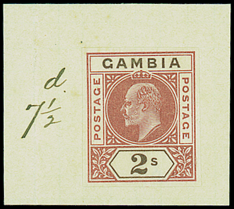 2/- in red-brown and brown, affixed to small piece marked "7½d"; fine. Photo