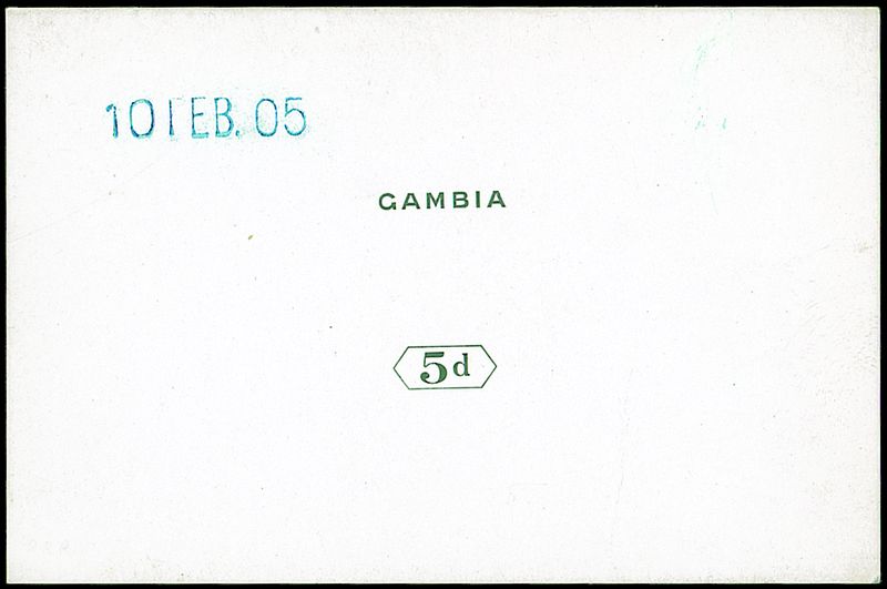 5d. country name and value tablet, in black on glazed card (92x60mm.) dated "10 feb. 05"; fine. Photo