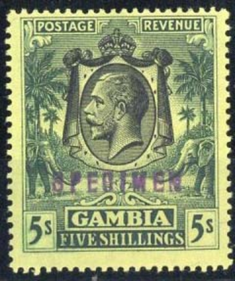 MCA 5/- green on yellow handstamped "specimen" (D18) in violet, fresh mint
