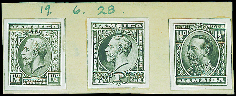 The following 153 lots have been removed from the printer's daily photographic record books, many being of hand-painted essays and unaccepted designs, and mostly mounted on card/paper. The dates stated are the entry dates into the archive record books