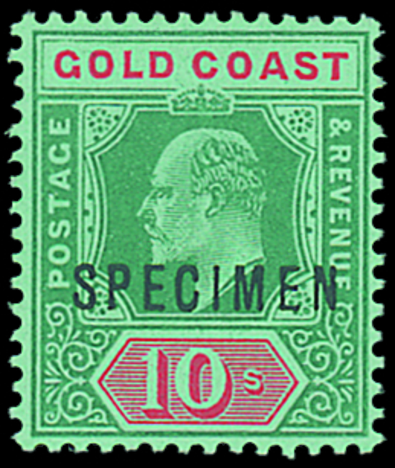 10/- green and red on green, prepared for use but not issued, overprinted "specimen", fresh mint. S.G. 69s, £275. Photo