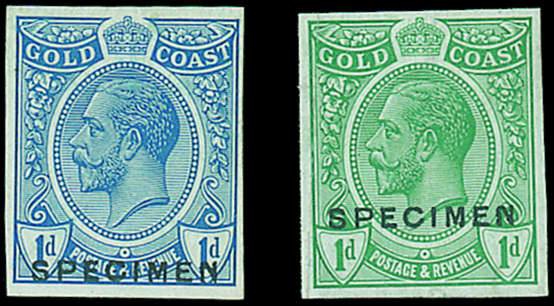 — 1d. blue and 1d. green, imperforate on glazed paper, each overprinted "specimen" (DS1), fine. Photo